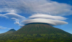 Mount Karisimbi is a strato volcano found in Virunga Mountains on the border between Rwanda and DRC. It’s currently dormant. At 4,507 meters, Karisimbi is the highest of the eight major mountains of the mountain range, which is a part of the Albertine Rift, the western branch of the East African Rift. Karisimbi is flanked by Mikeno, Bisoke to the east and the Nyiragongo to the west, on the other side of the rift valley. Karisimbi is the 11th highest mountain in Africa.
